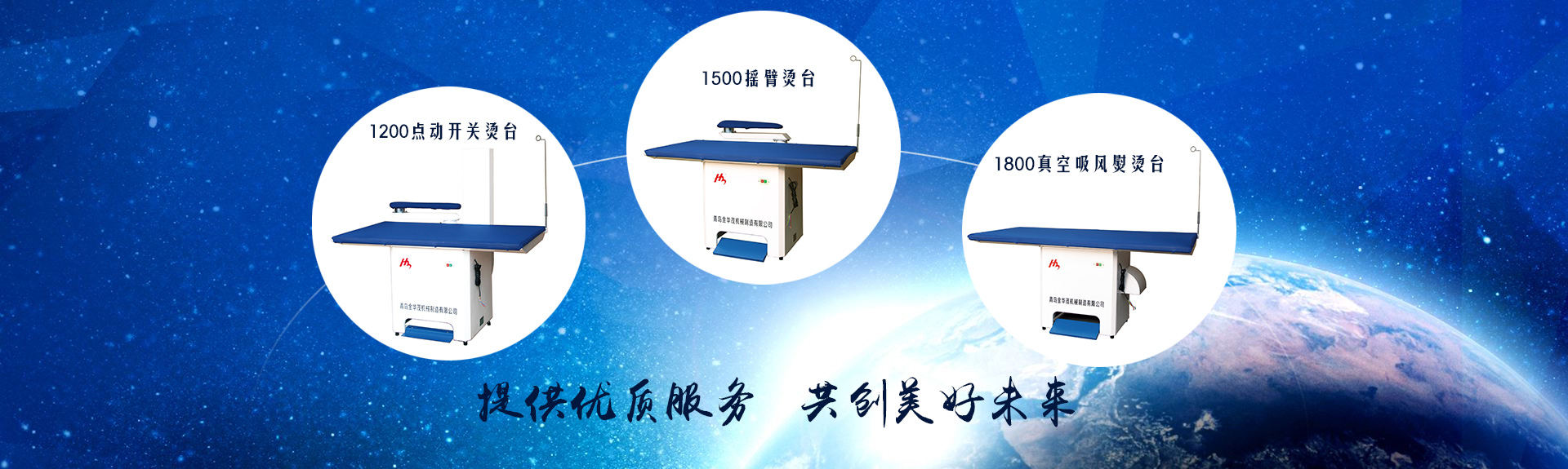 青島金華茂機械制造有限公司(青島華茂服裝機械廠)主要生產真空吸風熨燙臺、點動開關燙臺、搖臂燙臺、粘合機、吸線頭機、電加熱蒸汽發生器等服裝機械。